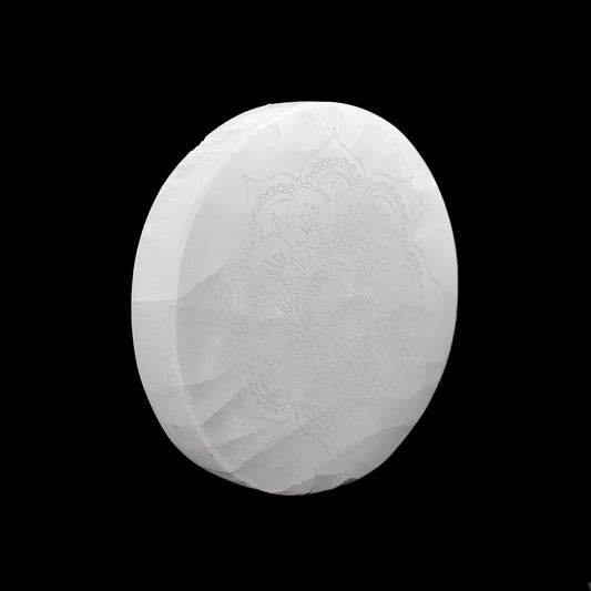 Piastra di ricarica in selenite / mandala fiore di loto / Ø 8 cm