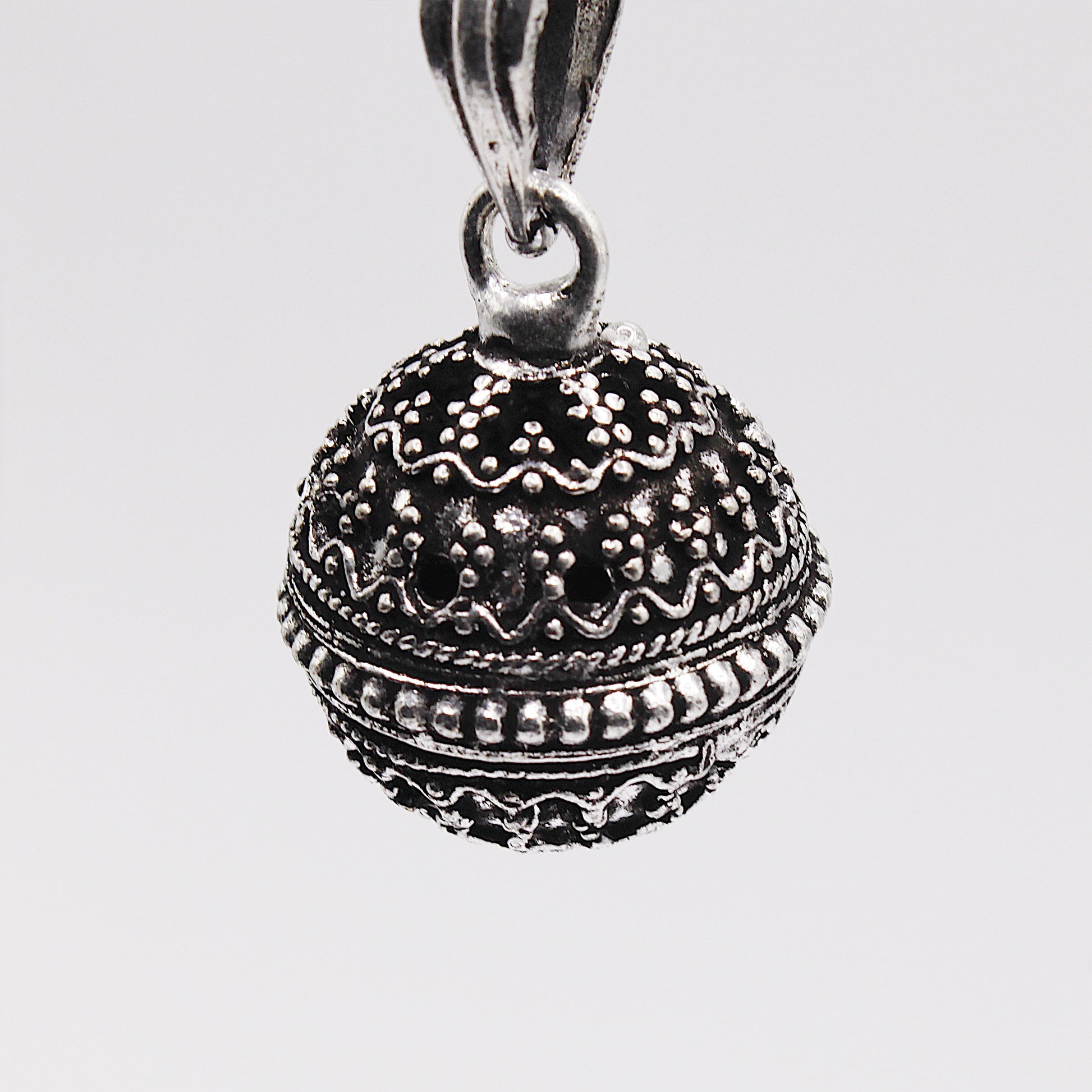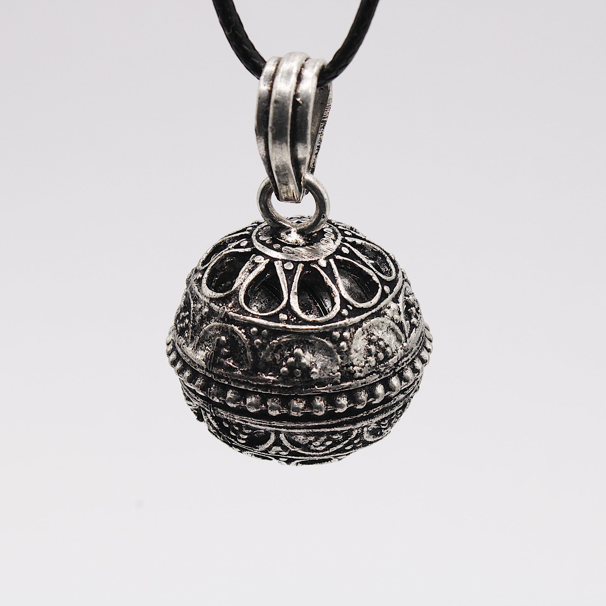 Il Chiama Angeli è un ciondolo sferico che emette un suono delicato e armonioso grazie a un piccolo xilofono interno. Questo suono è ritenuto un richiamo per l’angelo custode, portando serenità a chi lo indossa.