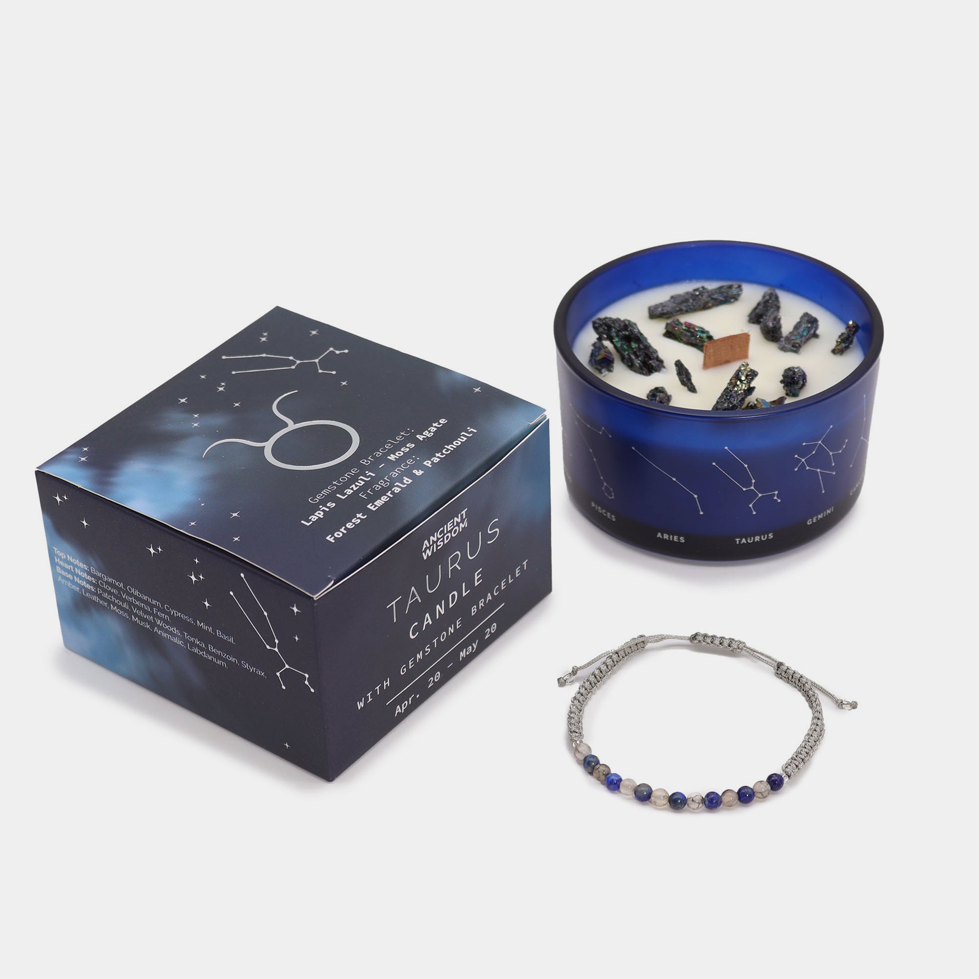 Abbraccia l'energia solida e rigenerante del Toro con questa candela dello Zodiaco, arricchita da un braccialetto unico. La ricca fragranza di Felce Forestale e Patchouli evoca una connessione profonda con la natura, diffondendo calma e armonia, proprio come il carattere stabile e sereno di questo segno.