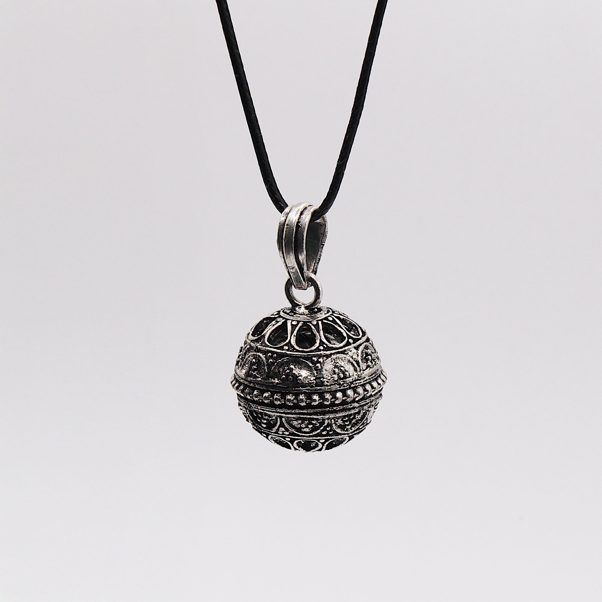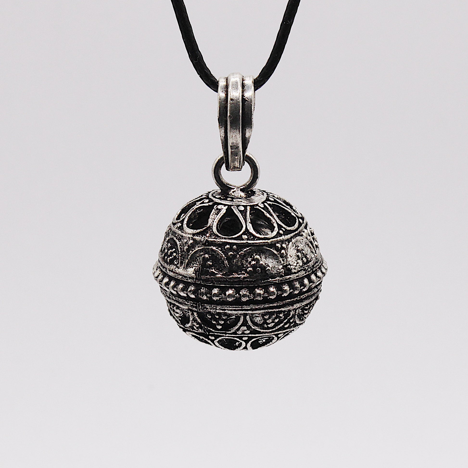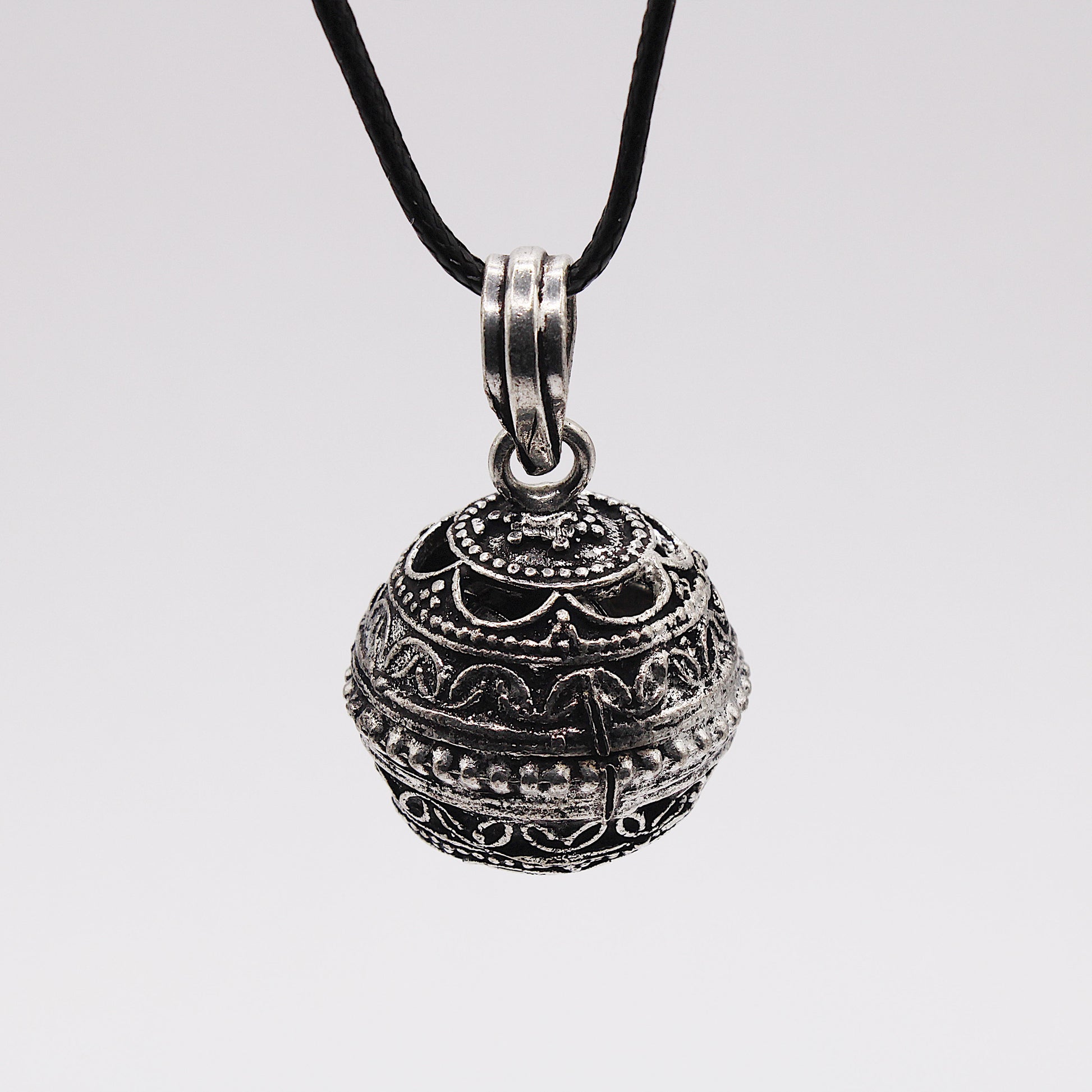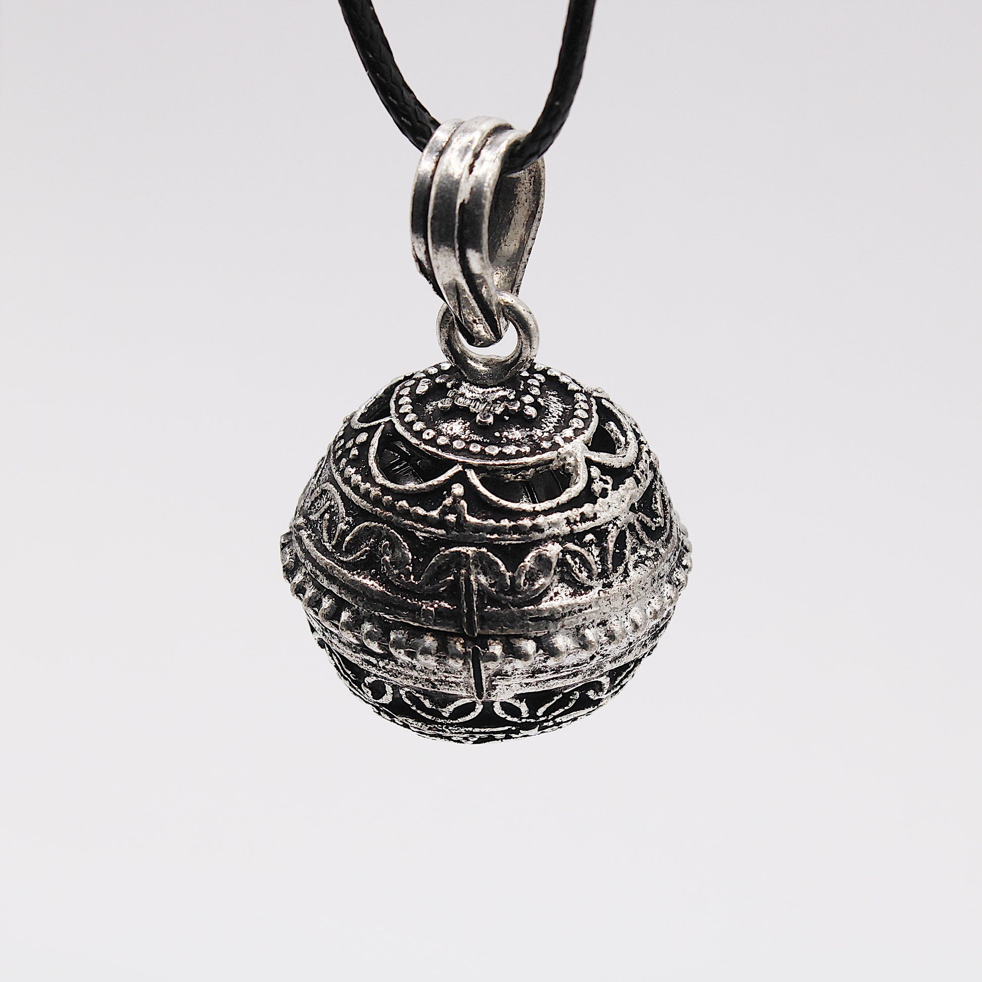 Il Chiama Angeli è un ciondolo sferico che emette un suono delicato e armonioso grazie a un piccolo xilofono interno. Questo suono è ritenuto un richiamo per l’angelo custode, portando serenità a chi lo indossa.