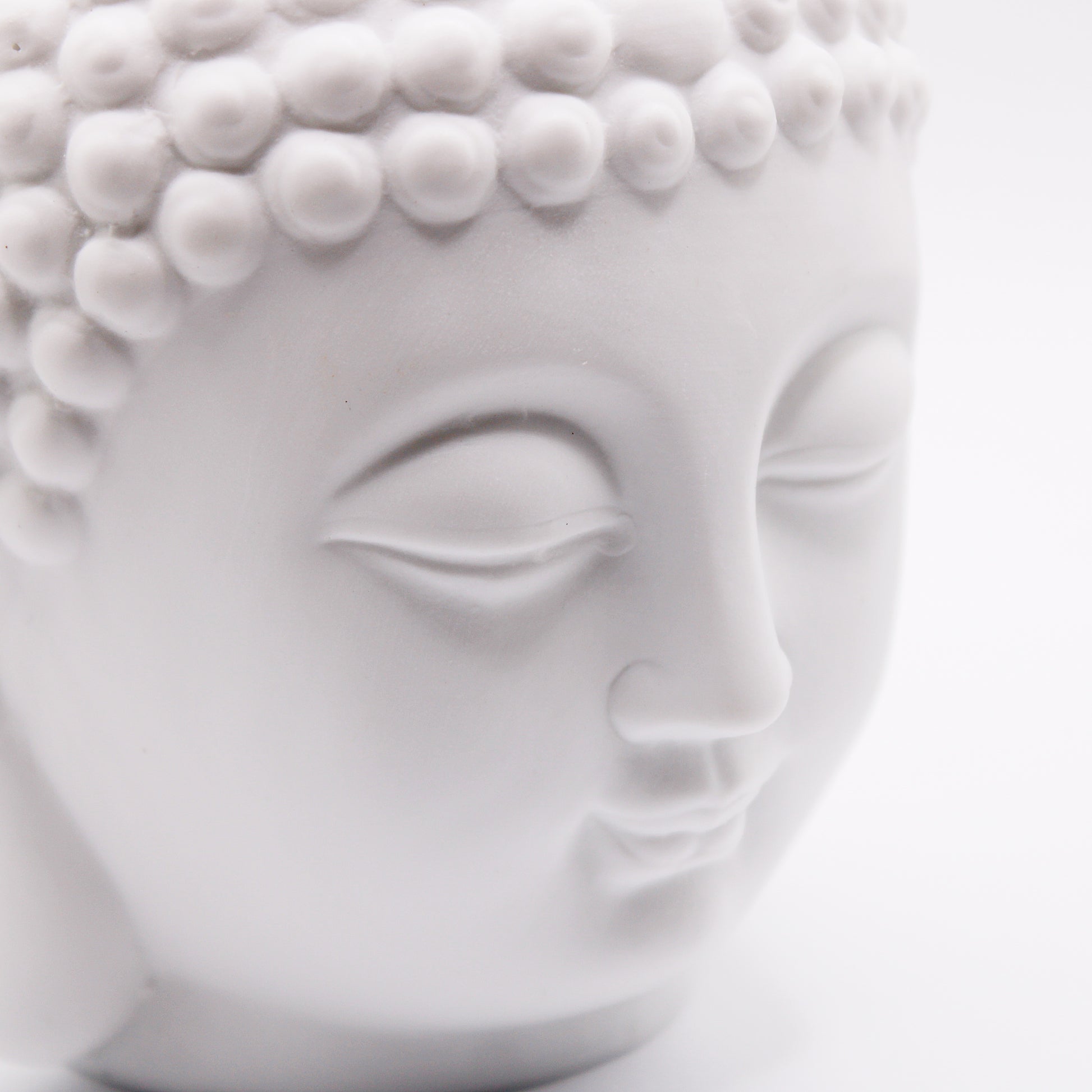 Diffusore per aromi in ceramica a forma di Buddha color bianco, 14 cm.