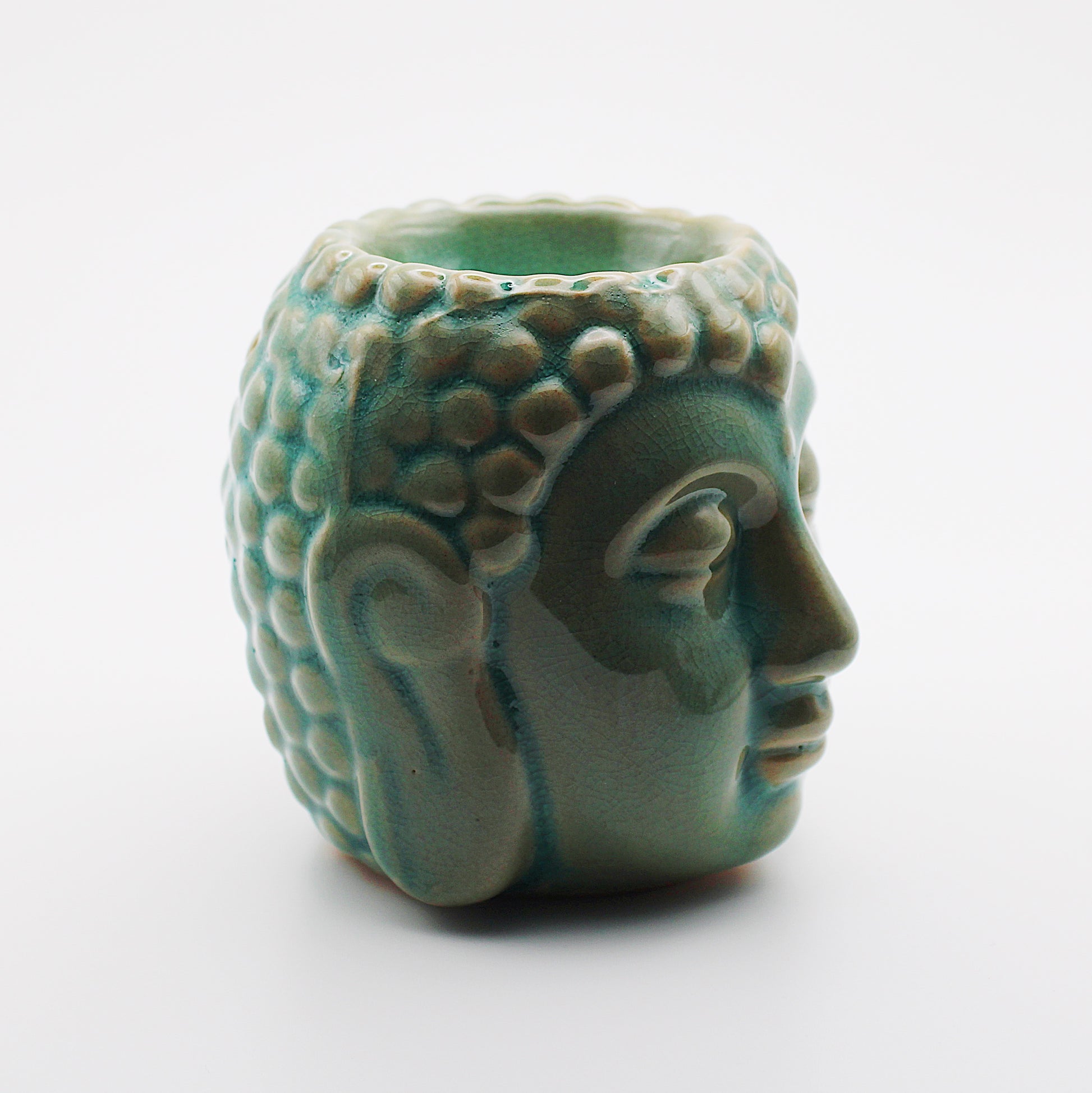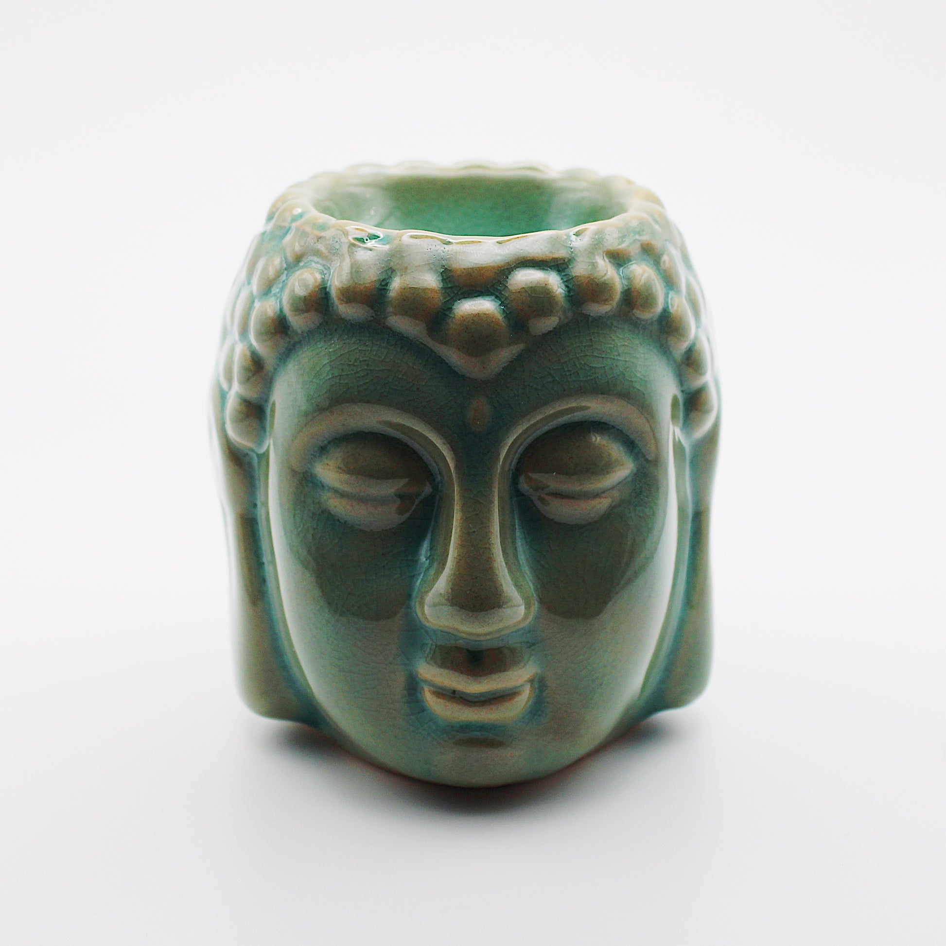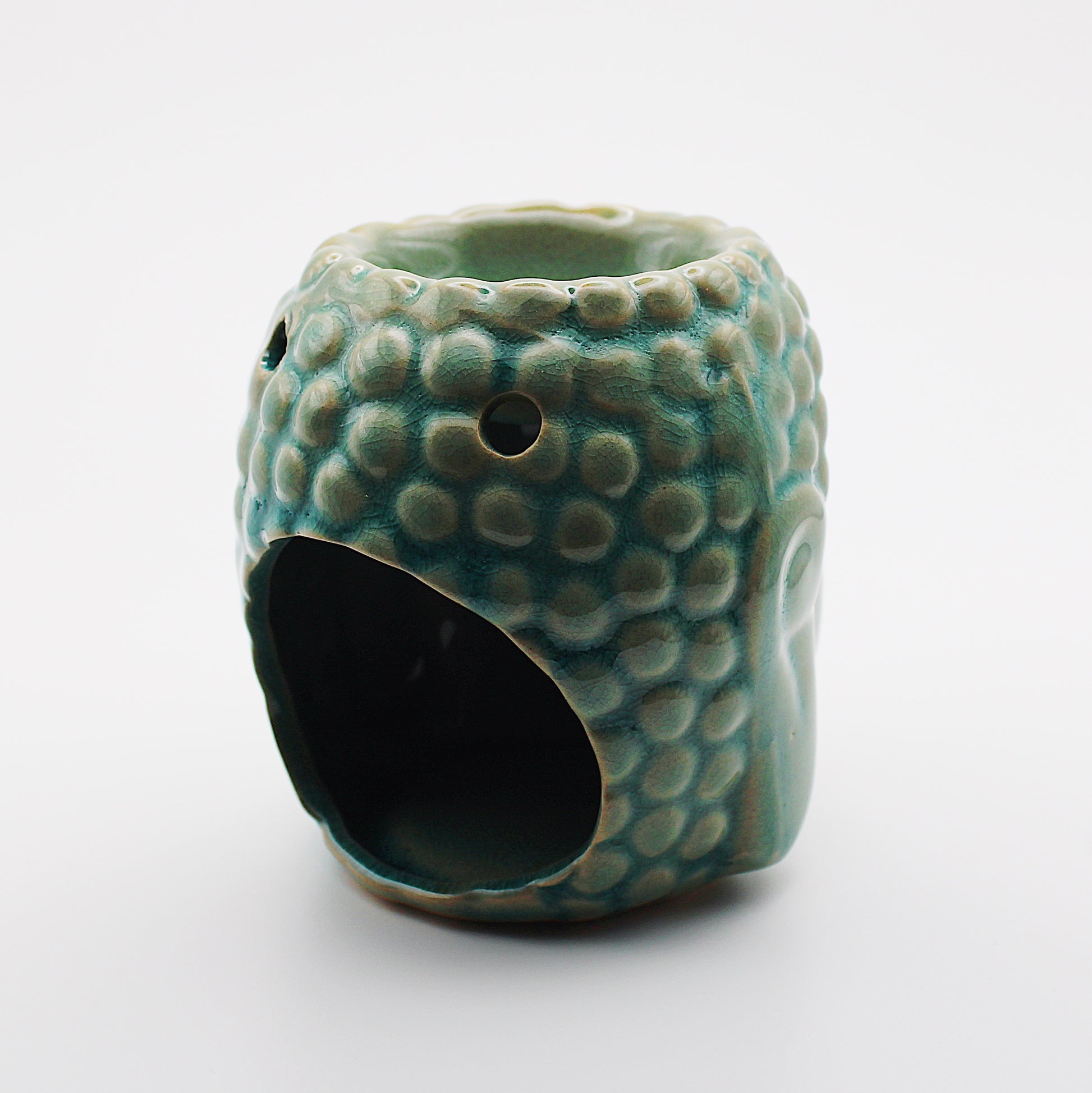 Diffusore per aromi in ceramica a forma di Buddha color blu aqua, 9 cm.