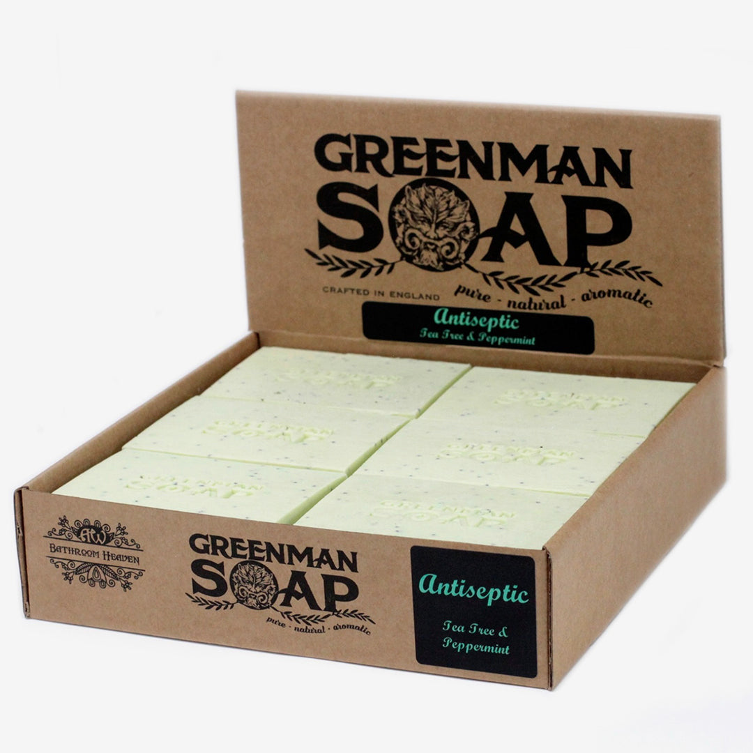 Le nostre saponette Greenman - antisettico, sono semplicemente pure, naturali e profumate con oli essenziali! Sono ispirate al mito inglese del Greenman, una figura legata alla natura, nata dalle nebbie della foresta. Sono prive di SLS e parabeni, realizzate con prodotti botanici. Ognuna di esse è creata con proprietà specifiche per un tipo di utilizzo, ad esempio, la saponetta antisettico è realizzata con oli di tea tree e menta piperita, per un effetto disinfettante e rinfrescante per rimuovere in profondità germi e batteri.
