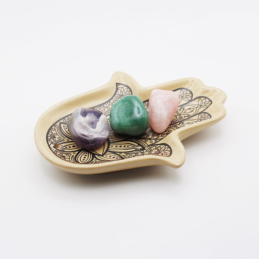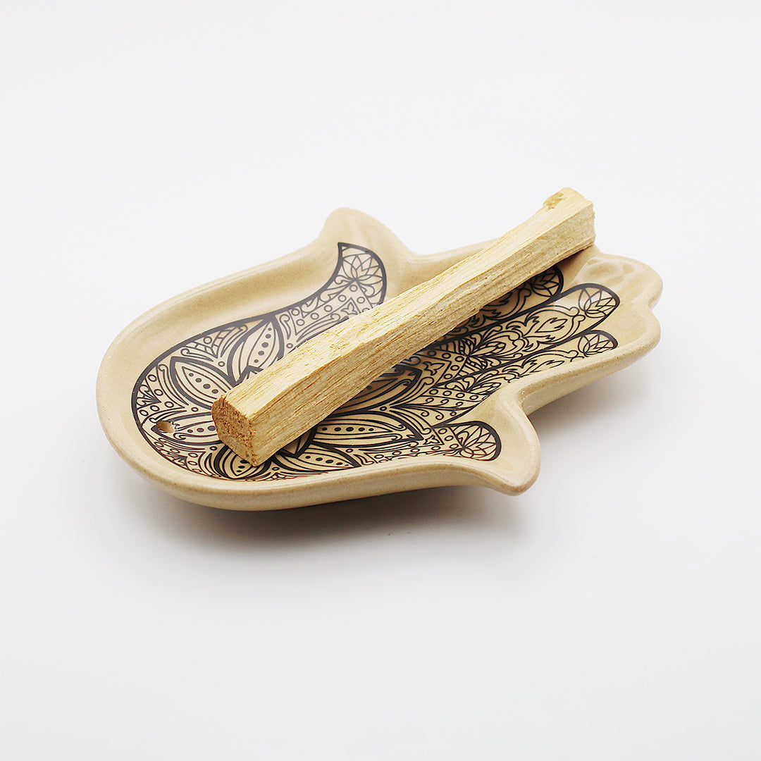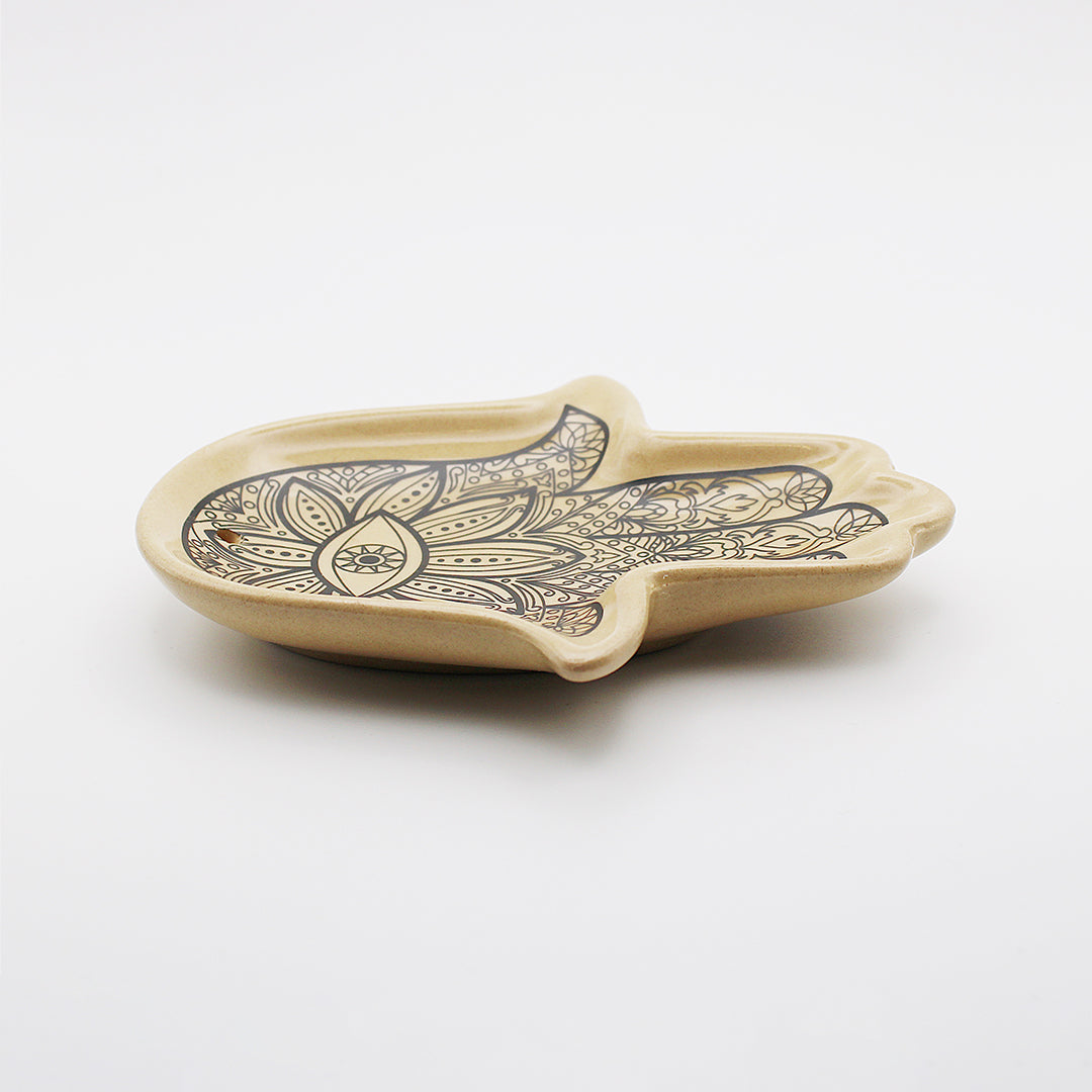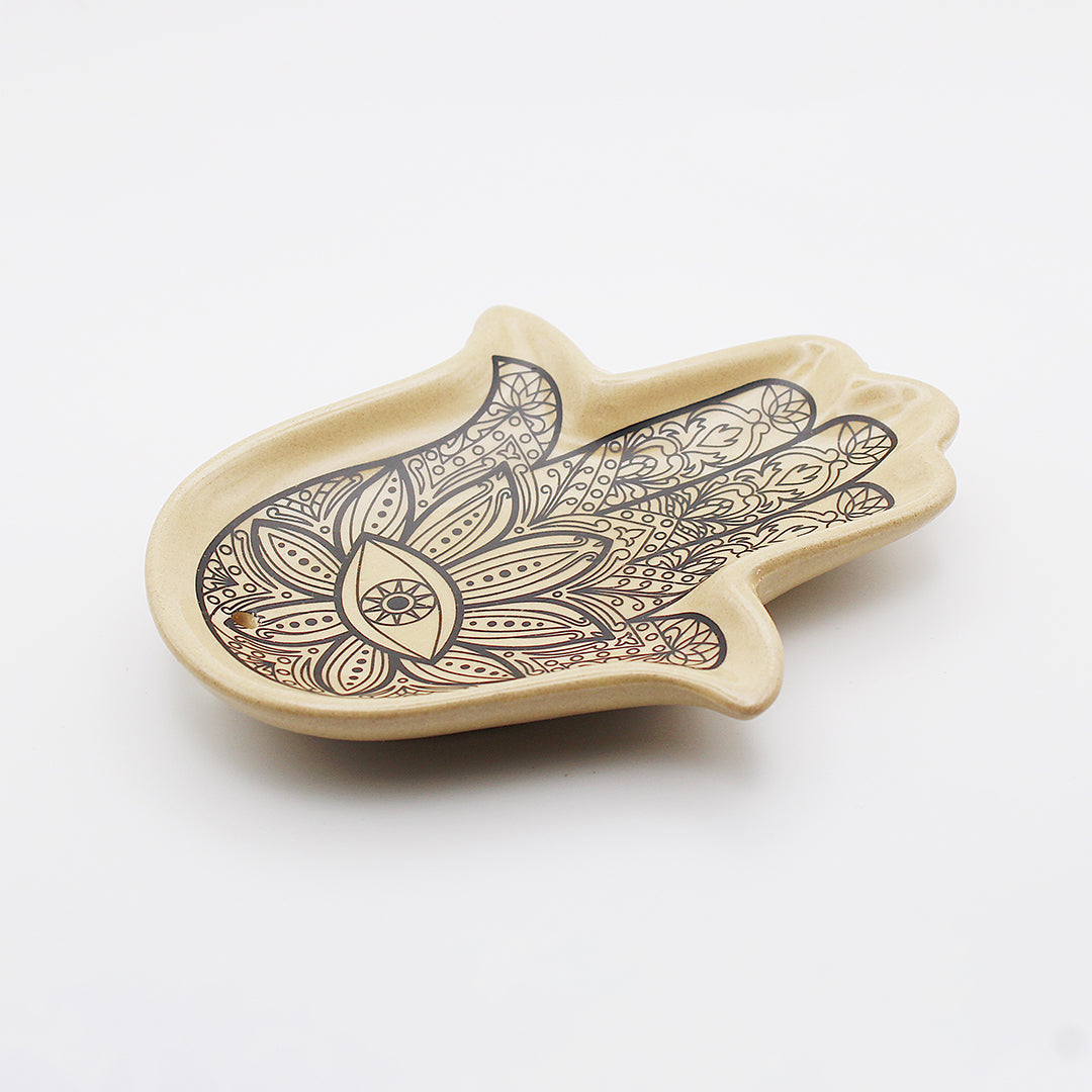 Un elegante piattino in ceramica a forma di mano di Fatima, pensato per accogliere delicatamente il tuo incenso preferito. Con dettagli finemente lavorati, questo porta incenso unisce arte e funzionalità, aggiungendo un tocco di spiritualità e raffinatezza al tuo ambiente.