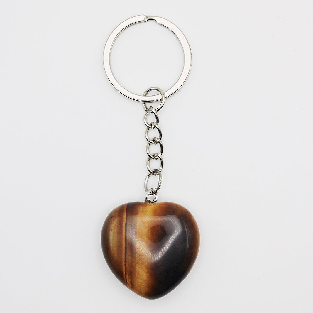Portachiavi cuore in occhio di tigre, dimensione ciondolo 30 mm.